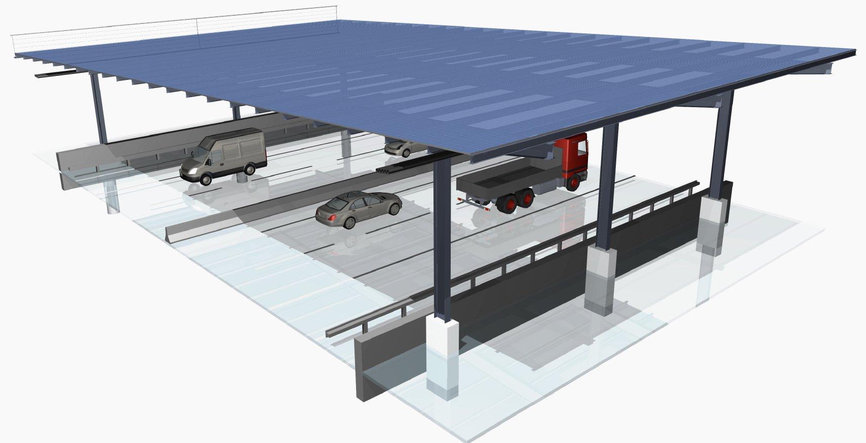 Si la route solaire construite en France n'est assurément pas un modèle viable, un Autobahn solaire est en projet chez nos amis d'outre Rhin, avec cette fois, des panneaux solaires placés au-dessus de la circulation, une sorte d'ombrière solaire. Double avantage, la production d'électricité et la protection de la chaussée contre les intempéries.