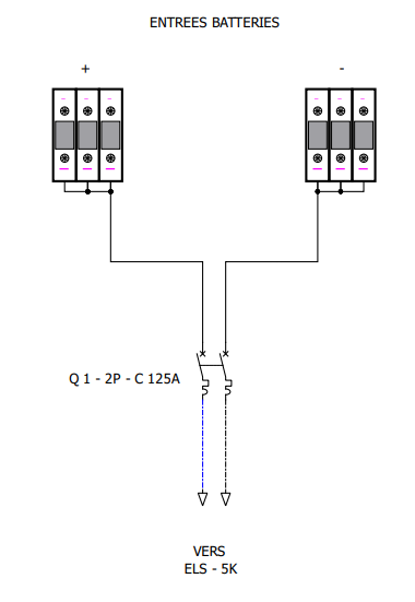 Le coffret est livré avec son schéma unifilaire et son étiquetage normatif. Il permet de couper une charge ou décharge batterie jusqu'à 6000W en 48V