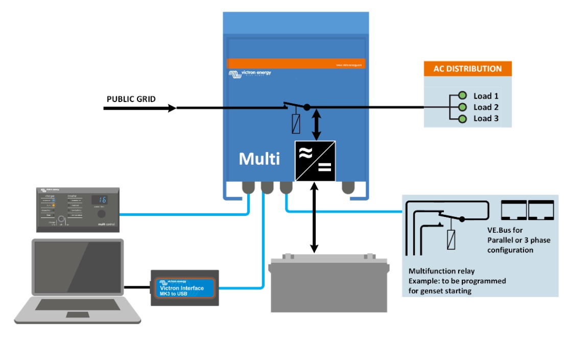Le Multiplus 24/500 10-16 de Victron Energy est particulièrement adapté comme :