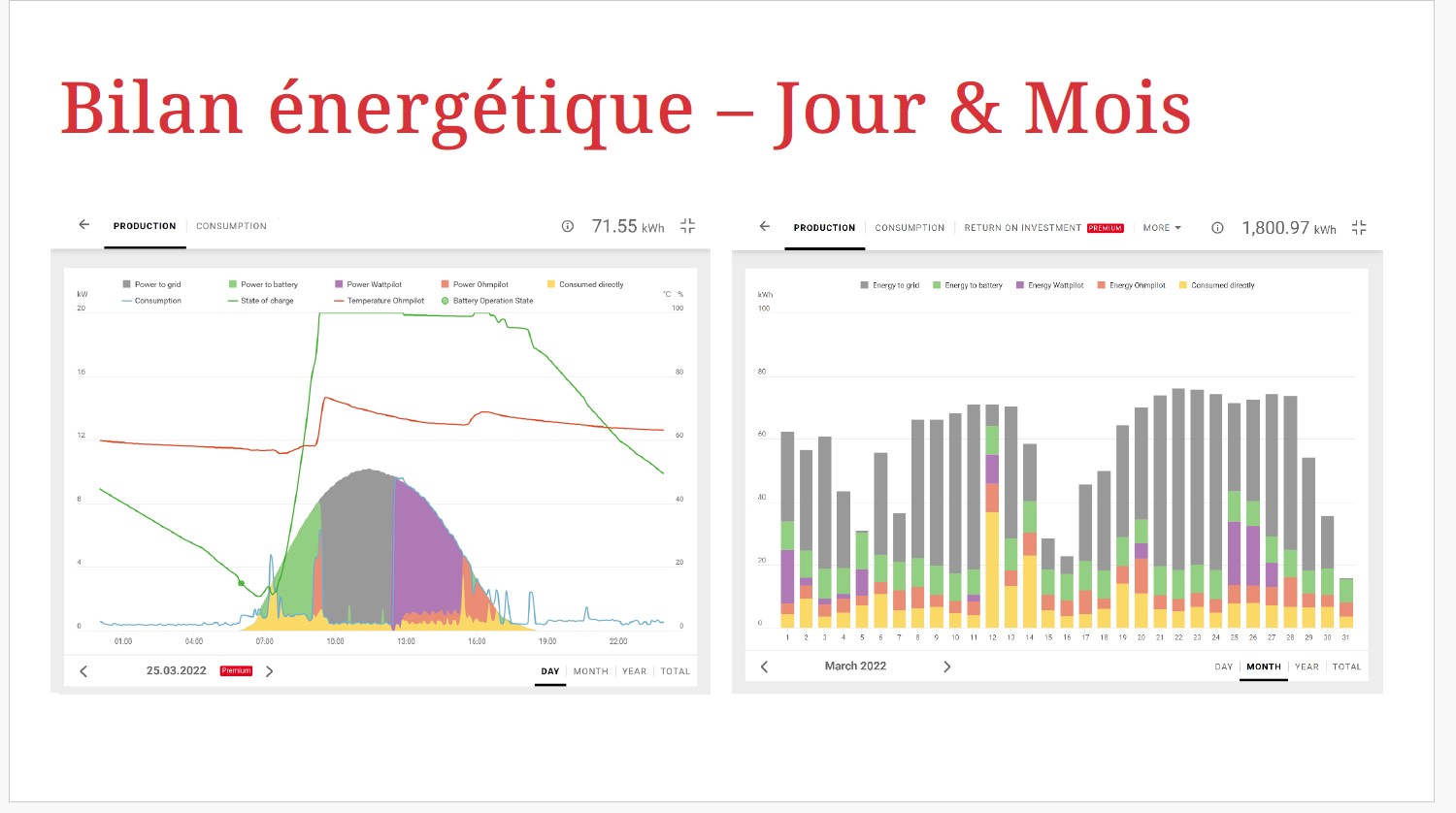 Il sera possible d'intégrer dans le Fronius Solarweb les informations de façon à avoir monitoring complet de la charge du véhicule mais aussi de l'ensemble de l'installation photovoltaïque qui peut être composée de l'onduleur, d'une batterie stationnaire au Lithium, d'un Ohmpilot et de la gestion de charge via relais.